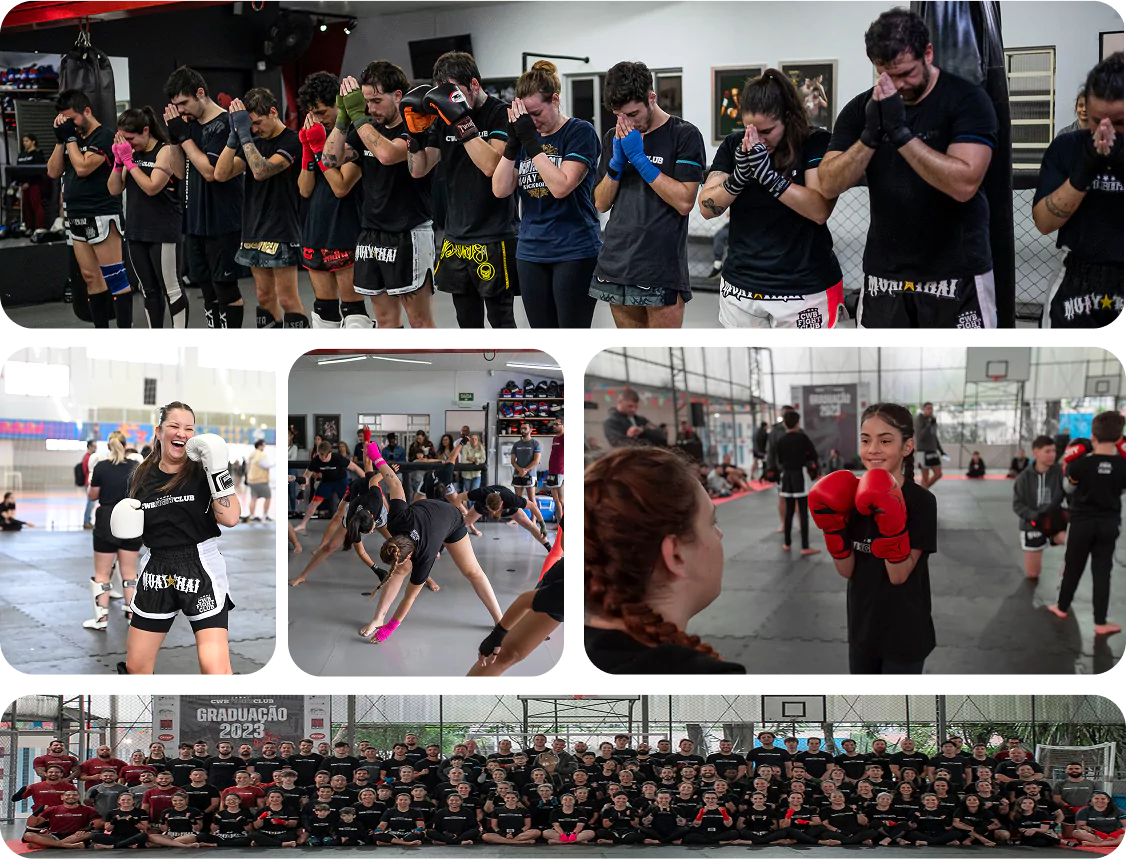 Com nossa metodologia exclusiva, você aprende Muay Thai e ainda entra para uma comunidade acolhedora, com professores que acompanham cada etapa da sua evolução.